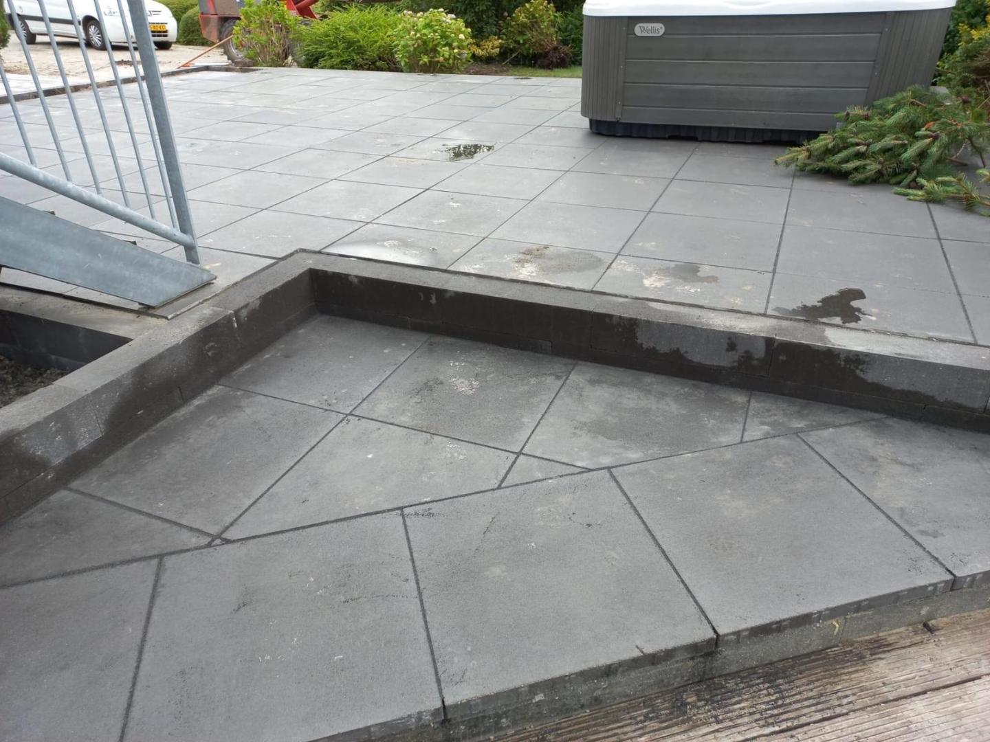 Sierbestrating geleverd voor nieuw aangelegd terras te Zwartkruis.